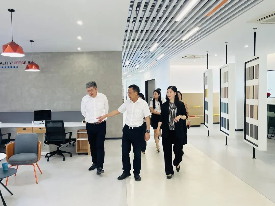 在傅强总经理的陪同下,叶建宏主席一行深入我司展厅,实地查看了各类产品的展示,叶主席一行仔细听取了产品介绍,对产业集团在产品创新、技术研发方面的成果表示高度赞赏与肯定。