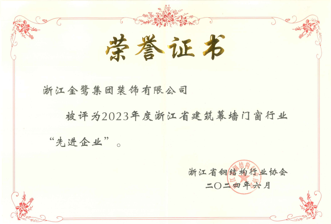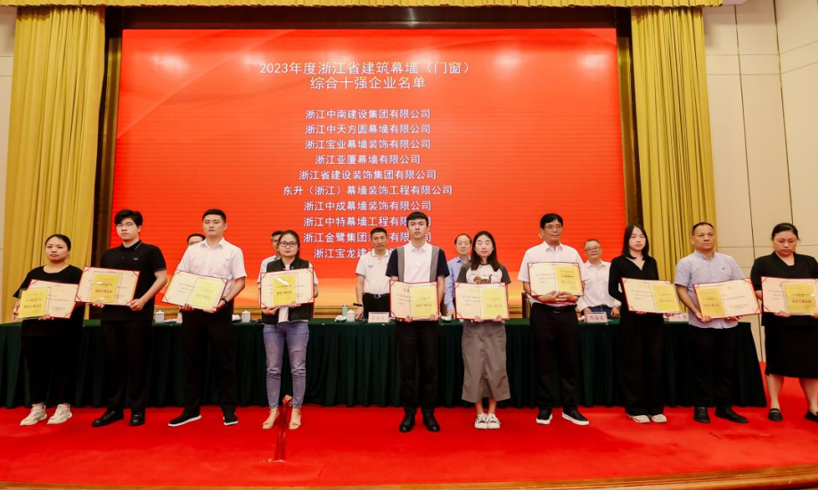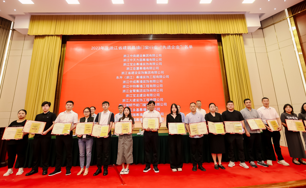 会上会长助理朱双珠宣读了金刚奖浙江推荐奖、优秀建造师的表彰文件,副秘书长胡新赞宣读了双十强企业、先进企业、BIM技能应用大赛的表彰文件,产业装饰荣获2023年度浙江省建筑幕墙门窗行业“先进企业”、2023年度浙江省建筑幕墙门窗综合“十强企业”两项荣誉。